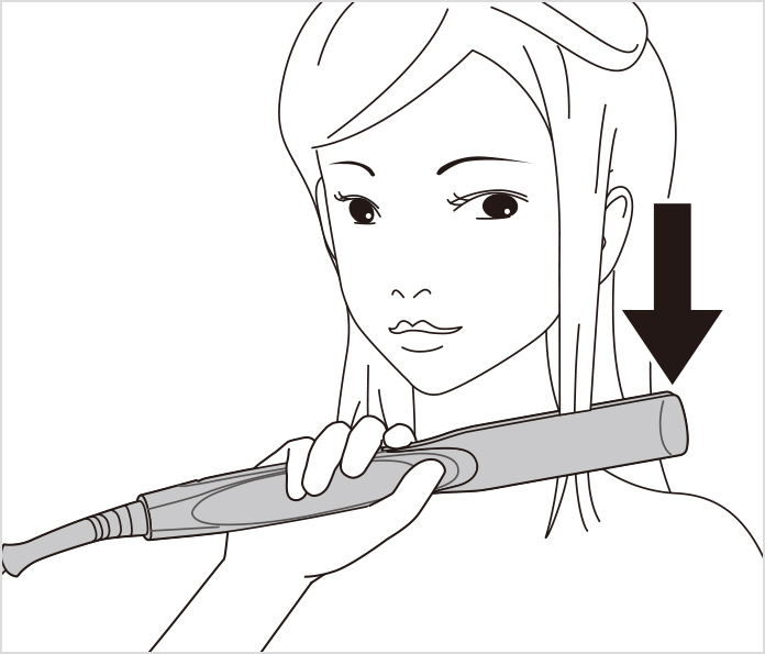 主体稍微朝着希望卷起的方向倾斜,将发束夹在发热板中间。